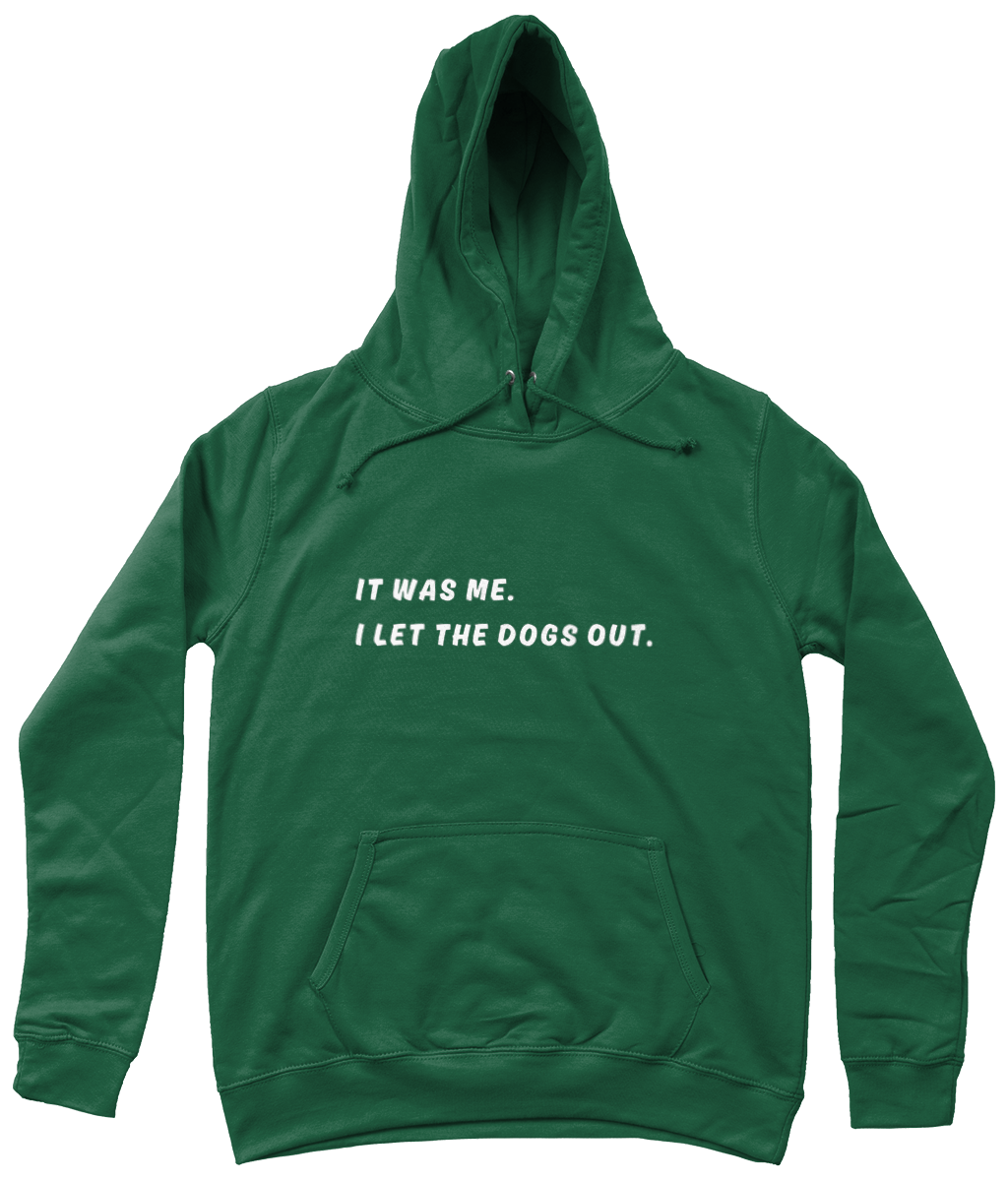 Que vous fassiez une balade en forêt, flâniez en ville ou vous rendiez au parc pour chiens, ce hoodie avec l’inscription “It was me. I let the dogs out.” est votre compagnon idéal. Confectionné dans une matière chaude et douce, avec une poche kangourou pour réchauffer vos mains (ou y glisser des friandises pour chiens). Confortable, amusant et parfait pour explorer le monde avec vos compagnons à quatre pattes.